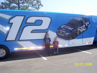 Yesterday, Kent saw in the Democrat-Gazette that Ryan Newman's car was going to be in Arkadelphia today. Seeing that we had nothing on the calendar planned, we picked up this morning and headed north. It was a 1 1/2 hour drive to see "the car". We met up with Kent's folks for lunch and some lovin' on the baby time. Here are a few pics from the day.